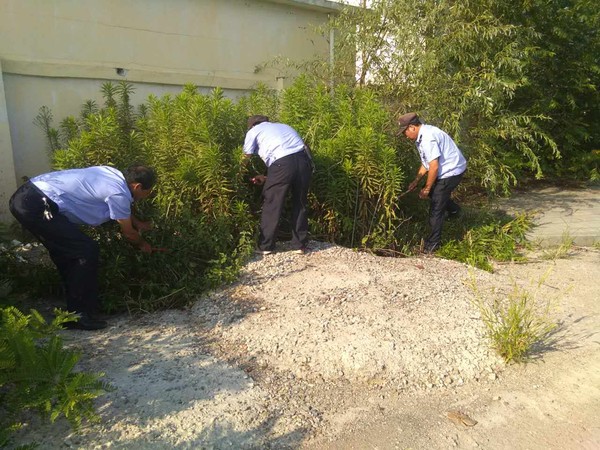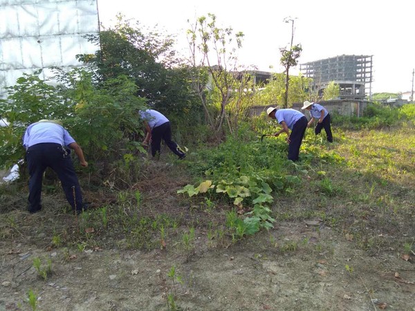 为扎实开展文明创建工作,避开近期高温天气,7月18日上午,园区城管分局组织开展周边环境整治工作,要求协管队伍提前一个半小时小时上岗工作,图为清理茶府周边杂草。