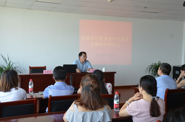 7月20日下午,宣城现代服务业产业园区金融知识培训会在百汇大厦15楼多功能厅举办,会议邀请金融专家关邦勋授课。园区管委会主任张勇主持会议,管委会全体干部职工、部分企业代表等20余人参加培训会。