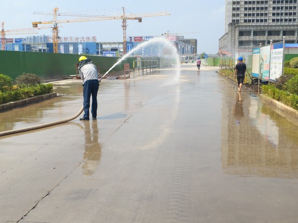 8月2日,园区管委会召开了2019年在建项目大气扬尘防治会议以后,进一步明确各建设、施工、监理企业的具体责任人,做到有具体人督导,有专人冲洗洒水,有专人覆盖裸土,保障人力、物力、财力,确保扬尘治理各项工作落实到位。