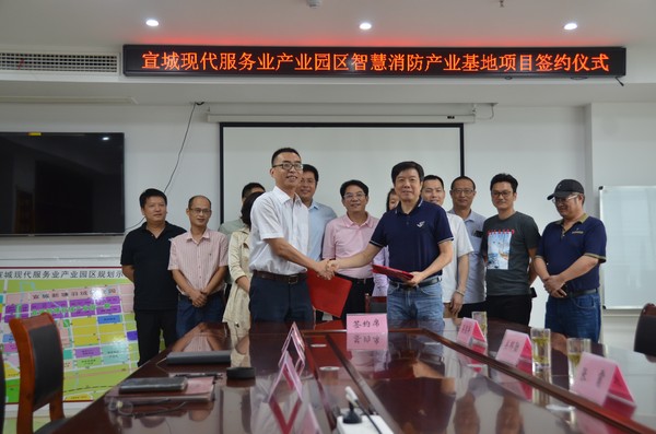 9月3日上午,宣城智能制造产业园一期暨“智慧消防产业基地”项目正式签约,园区管委会主任张勇及相关科室、平台公司负责同志,安徽创能消防科技有限公司有关负责同志参加签约。