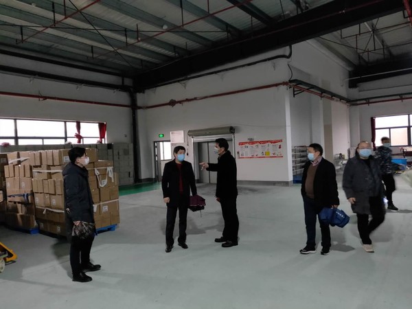 2月14日下午,园区管委会主任张勇来到羽绒产业园,调研企业复工复产情况。新塘街道驻羽绒产业园联络办主任喻国强,以及有关企业负责同志等陪同。