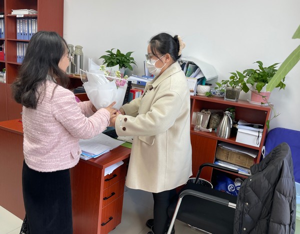 3月8日上午,行政事业部组织分发花束,为女职工们送上花束的同时还送去节日的美好祝愿,向她们表达了公司领导对她们的关心和问候,祝愿她们度过一个愉快的“三八节”。